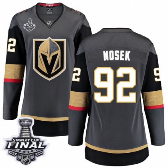 >Women's Vegas Golden Knights #92 Tomas Nosek Authentic Black Home Fanatics Branded Breakaway 2018 Stanley Cup Final NHL Jersey