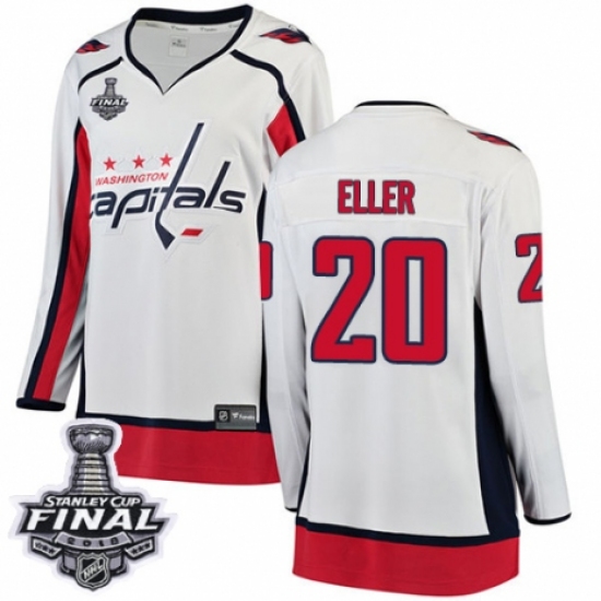 Women's Washington Capitals #20 Lars Eller Fanatics Branded White Away Breakaway 2018 Stanley Cup Final NHL Jersey