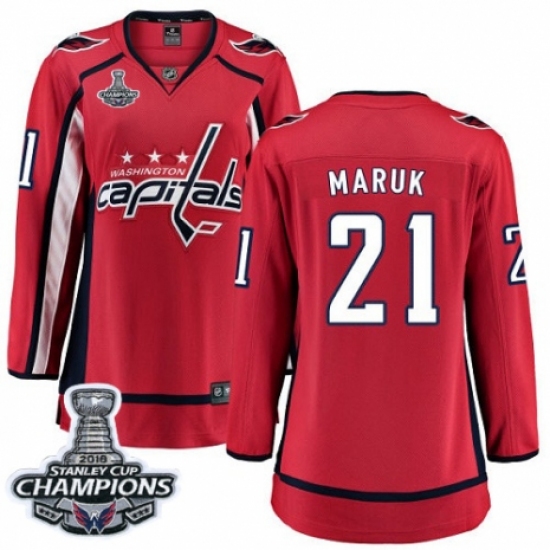 Women's Washington Capitals #21 Dennis Maruk Fanatics Branded Red Home Breakaway 2018 Stanley Cup Final Champions NHL Jersey
