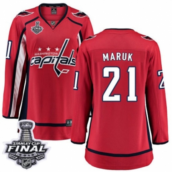 >Women's Washington Capitals #21 Dennis Maruk Fanatics Branded Red Home Breakaway 2018 Stanley Cup Final NHL Jersey