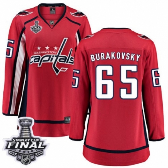 Women's Washington Capitals #65 Andre Burakovsky Fanatics Branded Red Home Breakaway 2018 Stanley Cup Final NHL Jersey