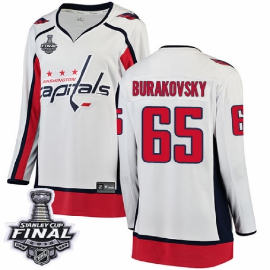 Women's Washington Capitals #65 Andre Burakovsky Fanatics Branded White Away Breakaway 2018 Stanley Cup Final NHL Jersey