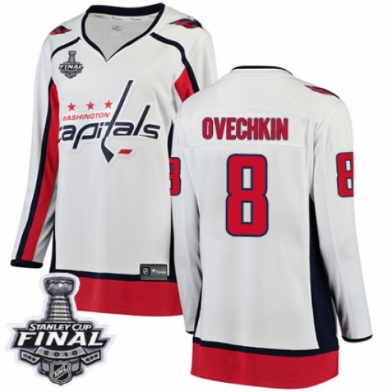 Women's Washington Capitals #8 Alex Ovechkin Fanatics Branded White Away Breakaway 2018 Stanley Cup Final NHL Jersey