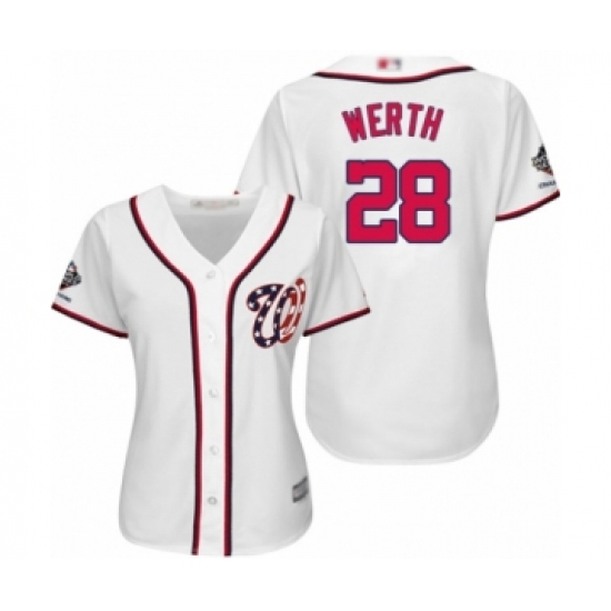 Women's Washington Nationals #28 Jayson Werth Authentic White Home Cool Base 2019 World Series Champions Baseball Jersey