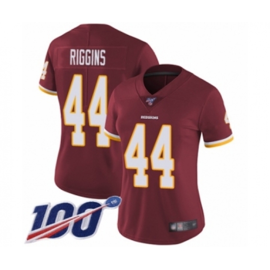 >Women's Washington Redskins #44 John Riggins Burgundy Red Team Color Vapor Untouchable Limited Player 100th Season Football Jersey
