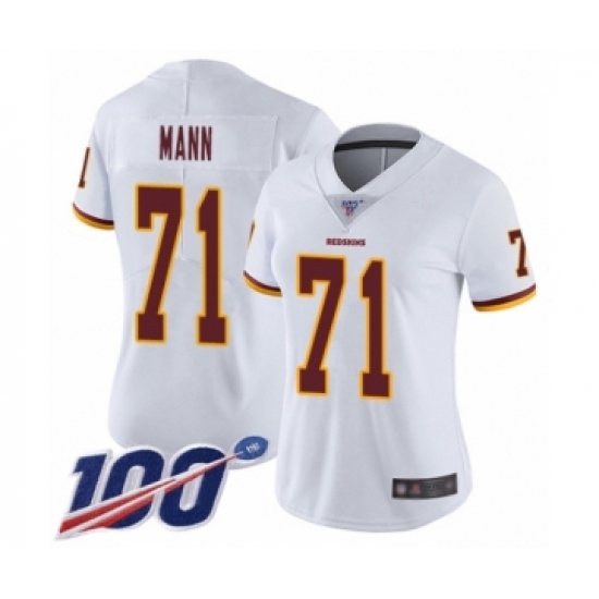 Women's Washington Redskins #71 Charles Mann White Vapor Untouchable Limited Player 100th Season Football Jersey