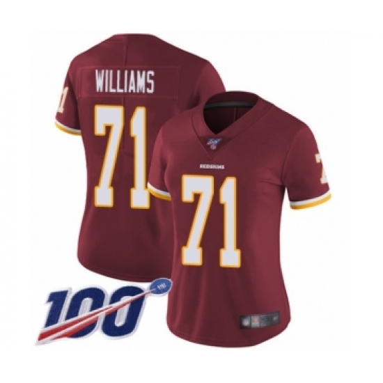 >Women's Washington Redskins #71 Trent Williams Burgundy Red Team Color Vapor Untouchable Limited Player 100th Season Football Jersey