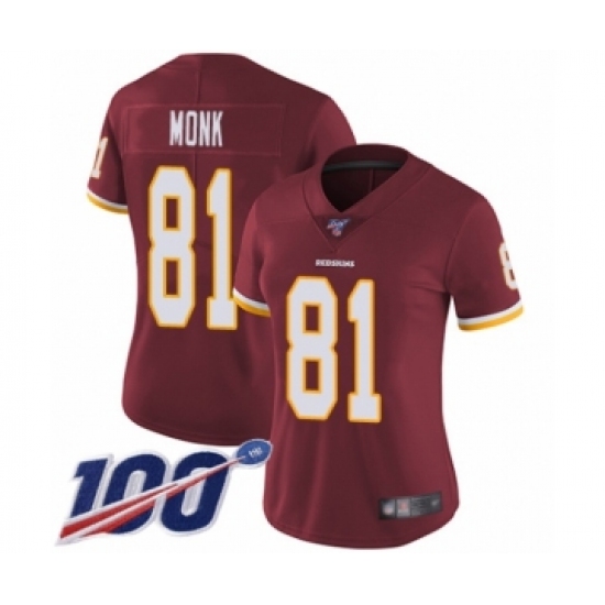 Women's Washington Redskins #81 Art Monk Burgundy Red Team Color Vapor Untouchable Limited Player 100th Season Football Jersey