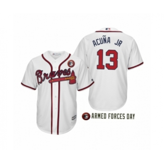 >Youth 2019 Armed Forces Day Ronald Acuna Jr. #13 Atlanta Braves White Cool Base Jersey