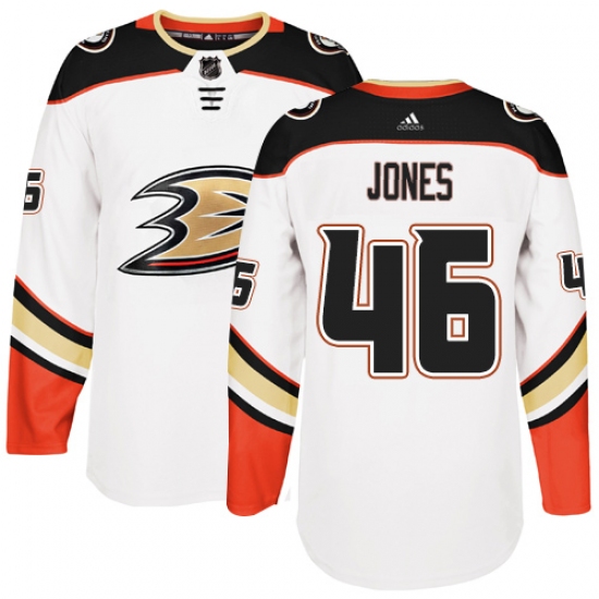>Youth Adidas Anaheim Ducks #46 Max Jones Authentic White Away NHL Jersey