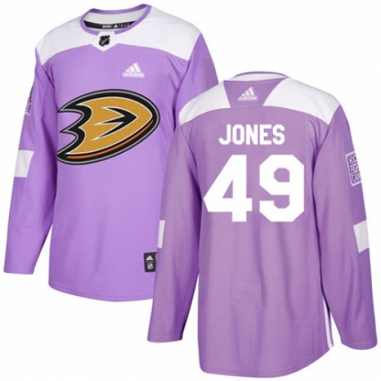 >Youth Adidas Anaheim Ducks #49 Max Jones Authentic Purple Fights Cancer Practice NHL Jersey