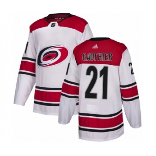 >Youth Adidas Carolina Hurricanes #21 Julien Gauthier Authentic White Away NHL Jersey