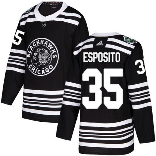 >Youth Adidas Chicago Blackhawks #35 Tony Esposito Authentic Black 2019 Winter Classic NHL Jersey