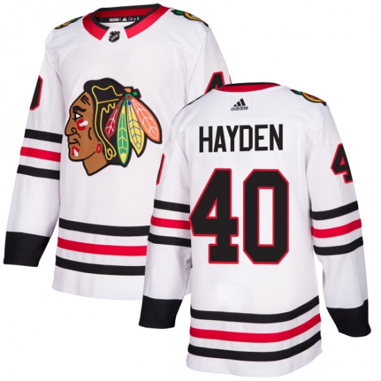 Home>NHL>Chicago Blackhawks>John Hayden>Youth Adidas Chicago Blackhawks #40 John Hayden Authentic White Away NHL Jersey