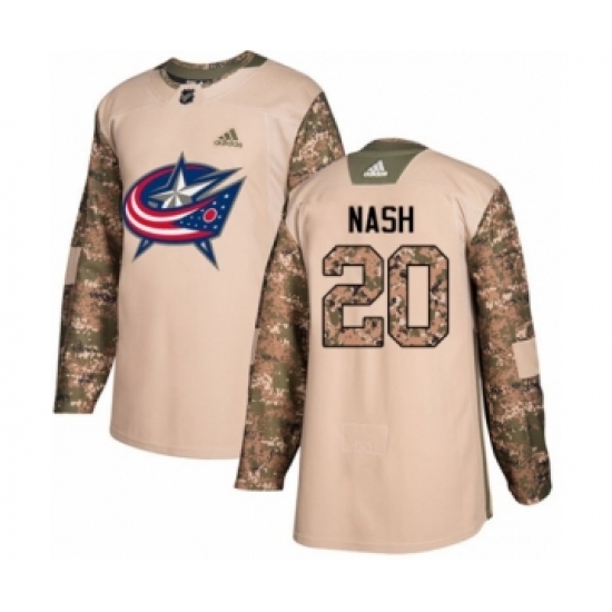 Men's Adidas Columbus Blue Jackets #20 Riley Nash Authentic Camo Veterans Day Practice NHL Jersey