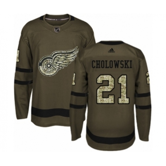 >Youth Adidas Detroit Red Wings #21 Dennis Cholowski Authentic Green Salute to Service NHL Jersey