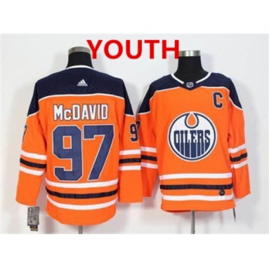 >Youth Adidas Edmonton Oilers #97 Connor McDavid Orange Home Authentic Stitched NHL Jersey