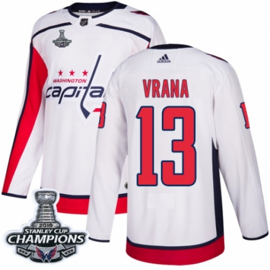 Men's Adidas Washington Capitals #13 Jakub Vrana Authentic White Away 2018 Stanley Cup Final Champions NHL Jersey