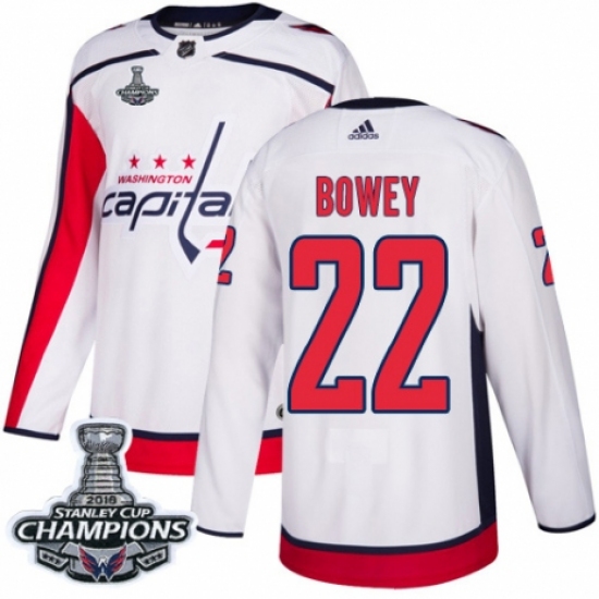 Men's Adidas Washington Capitals #22 Madison Bowey Authentic White Away 2018 Stanley Cup Final NHL Jersey
