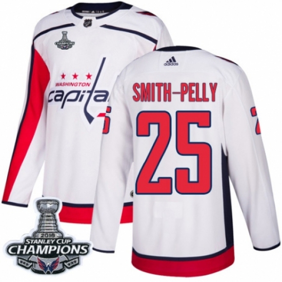 Youth Adidas Washington Capitals #25 Devante Smith-Pelly Authentic White Away 2018 Stanley Cup Final Champions NHL Jersey