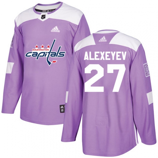 >Youth Adidas Washington Capitals #27 Alexander Alexeyev Authentic Purple Fights Cancer Practice NHL Jersey