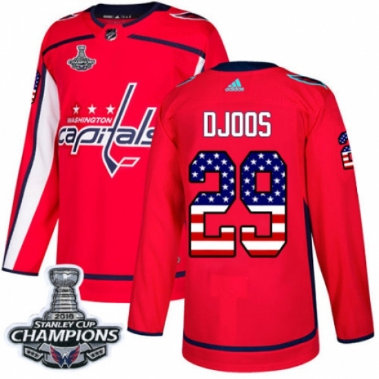 Women's Adidas Washington Capitals #29 Christian Djoos Authentic Red USA Flag Fashion 2018 Stanley Cup Final Champions NHL Jersey