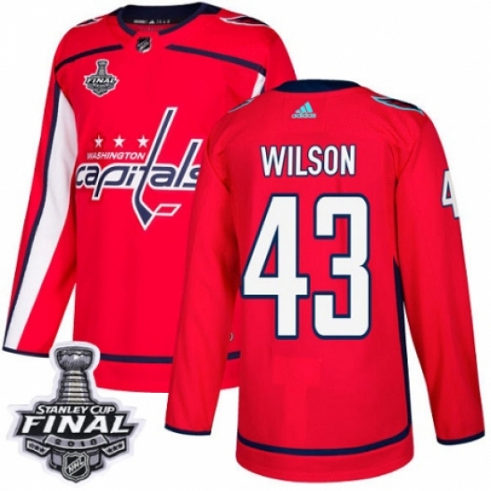 Youth Adidas Washington Capitals #43 Tom Wilson Authentic Red Home 2018 Stanley Cup Final NHL Jersey