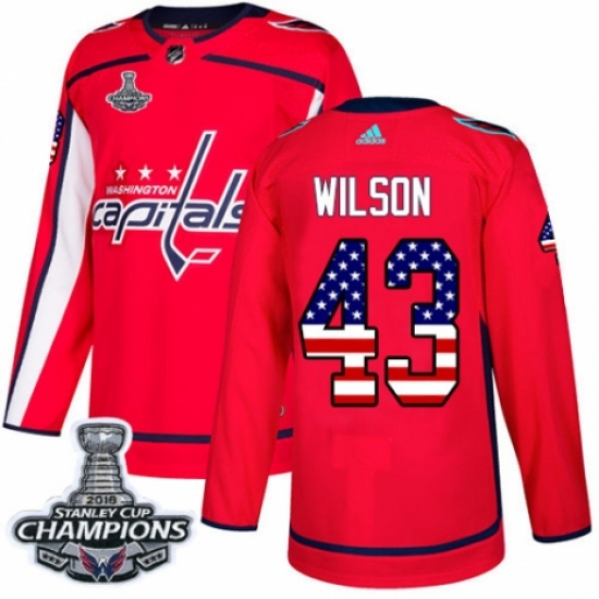 Youth Adidas Washington Capitals #43 Tom Wilson Authentic Red USA Flag Fashion 2018 Stanley Cup Final Champions NHL Jersey