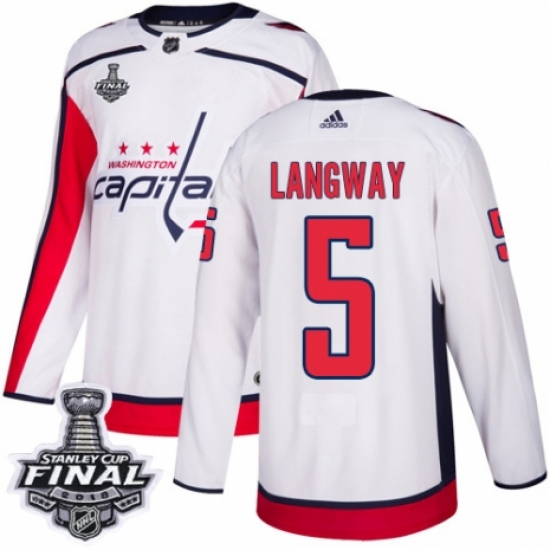 Men's Adidas Washington Capitals #5 Rod Langway Authentic White Away 2018 Stanley Cup Final Champions NHL Jersey
