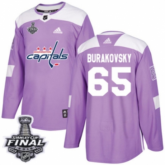 >Youth Adidas Washington Capitals #65 Andre Burakovsky Authentic Purple Fights Cancer Practice 2018 Stanley Cup Final NHL Jersey