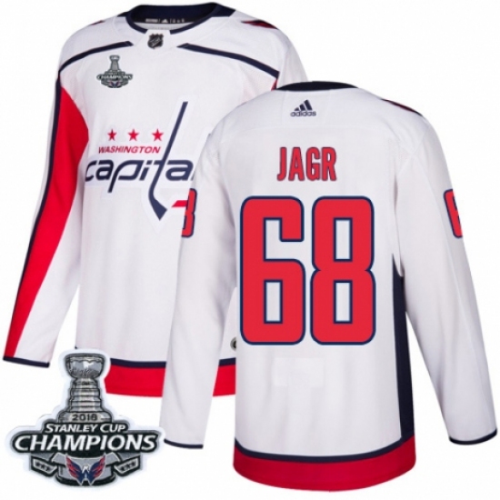>Youth Adidas Washington Capitals #68 Jaromir Jagr Authentic White Away 2018 Stanley Cup Final Champions NHL Jersey