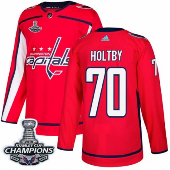 Men's Adidas Washington Capitals #70 Braden Holtby Premier Red Home 2018 Stanley Cup Final Champions NHL Jersey