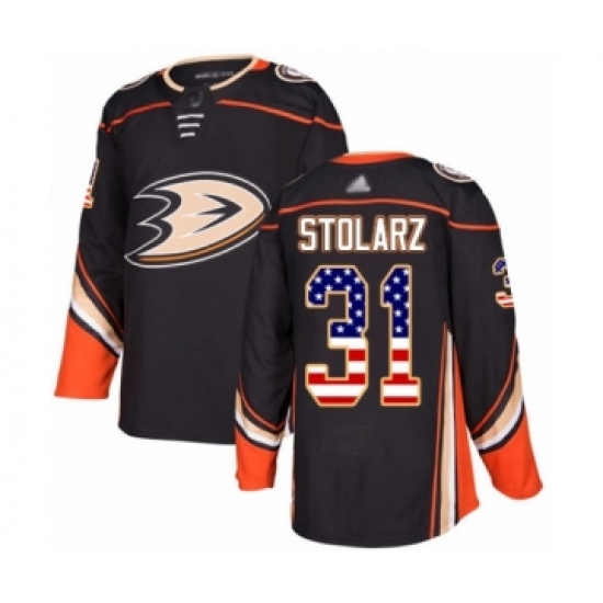 Men's Anaheim Ducks #31 Anthony Stolarz Authentic Black USA Flag Fashion Hockey Jersey