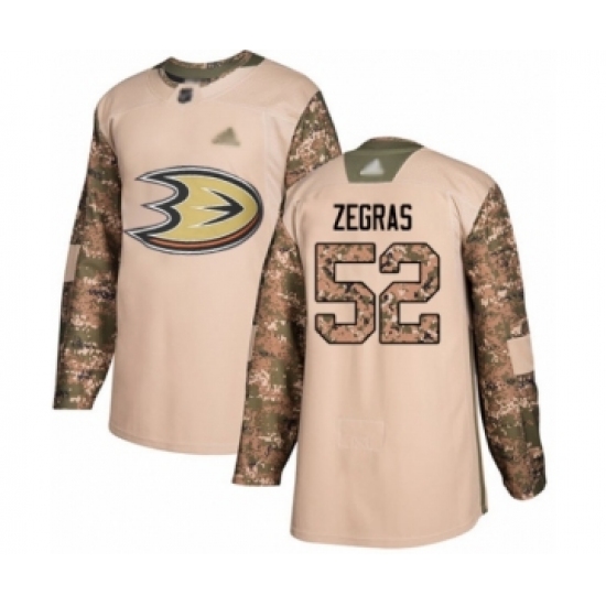 >Youth Anaheim Ducks #52 Trevor Zegras Authentic Camo Veterans Day Practice Hockey Jersey