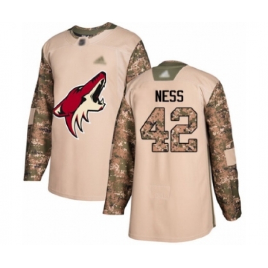 >Youth Arizona Coyotes #42 Aaron Ness Authentic Camo Veterans Day Practice Hockey Jersey
