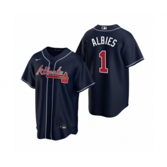 >Youth Atlanta Braves #1 Ozzie Albies Nike Navy 2020 Replica Alternate Jersey