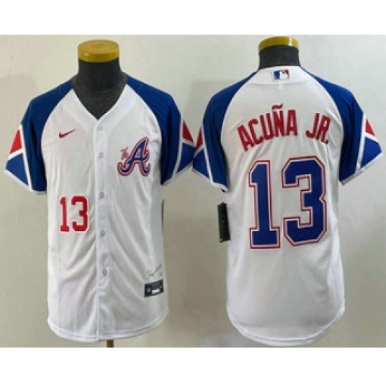 Youth Atlanta Braves #13 Ronald Acuna Jr Number White 2023 City Connect Cool Base Stitched Jersey2