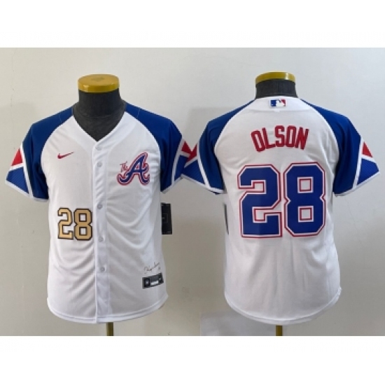 >Youth Atlanta Braves #28 Matt Olson Number White 2023 City Connect Cool Base Stitched Jersey