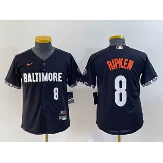 Youth Baltimore Orioles #8 Cal Ripken Jr Black 2023 City Connect Cool Base Stitched Jersey 1