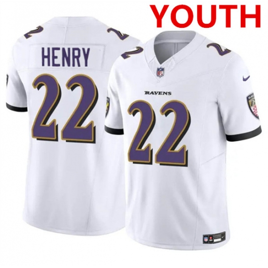 Youth Baltimore Ravens #22 Derrick Henry White 2023 F.U.S.E. Football Stitched Jersey