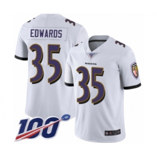 >Youth Baltimore Ravens #35 Gus Edwards White Vapor Untouchable Limited Player 100th Season Football Jersey