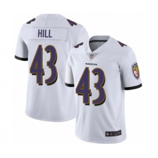 >Youth Baltimore Ravens #43 Justice Hill White Vapor Untouchable Limited Player Football Jersey