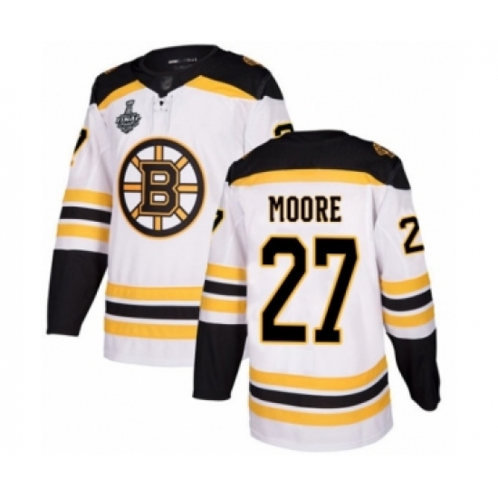 Men's Boston Bruins #27 John Moore Authentic White Away 2019 Stanley Cup Final Bound Hockey Jersey