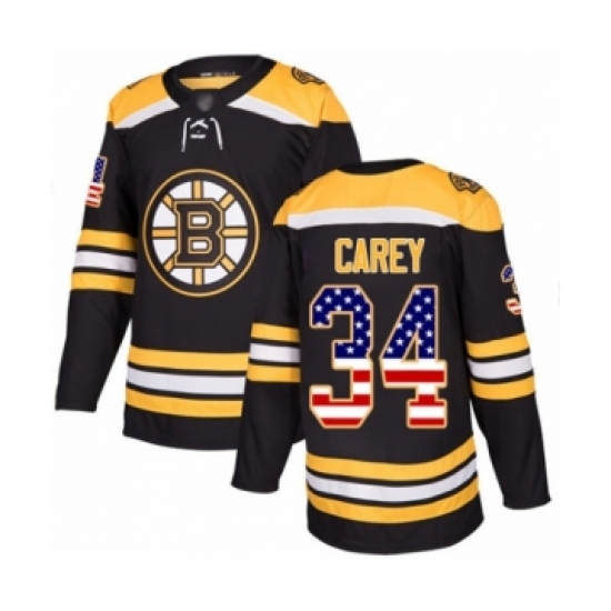 Men's Boston Bruins #34 Paul Carey Authentic Black USA Flag Fashion Hockey Jersey