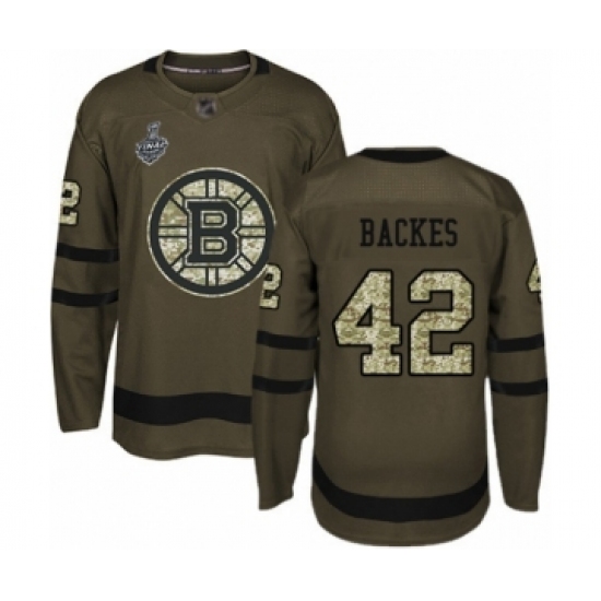 >Youth Boston Bruins #42 David Backes Authentic Green Salute to Service 2019 Stanley Cup Final Bound Hockey Jersey