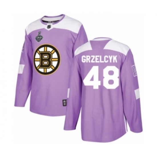 Men's Boston Bruins #48 Matt Grzelcyk Authentic Purple Fights Cancer Practice 2019 Stanley Cup Final Bound Hockey Jersey