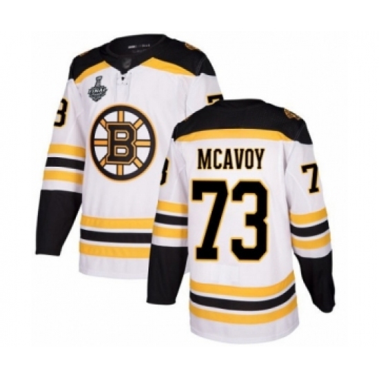 Men's Boston Bruins #73 Charlie McAvoy Authentic White Away 2019 Stanley Cup Final Bound Hockey Jersey