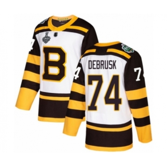 Youth Boston Bruins #74 Jake DeBrusk Authentic White Winter Classic 2019 Stanley Cup Final Bound Hockey Jersey