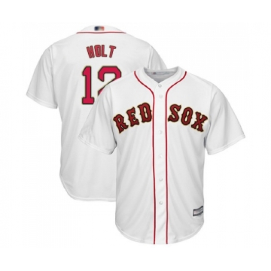 Youth Boston Red Sox #12 Brock Holt Authentic White 2019 Gold Program Cool Base Baseball Jersey