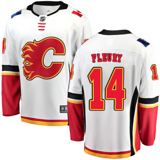 Home>NHL>Calgary Flames>Theoren Fleury>Youth Calgary Flames #14 Theoren Fleury Fanatics Branded White Away Breakaway NHL Jersey